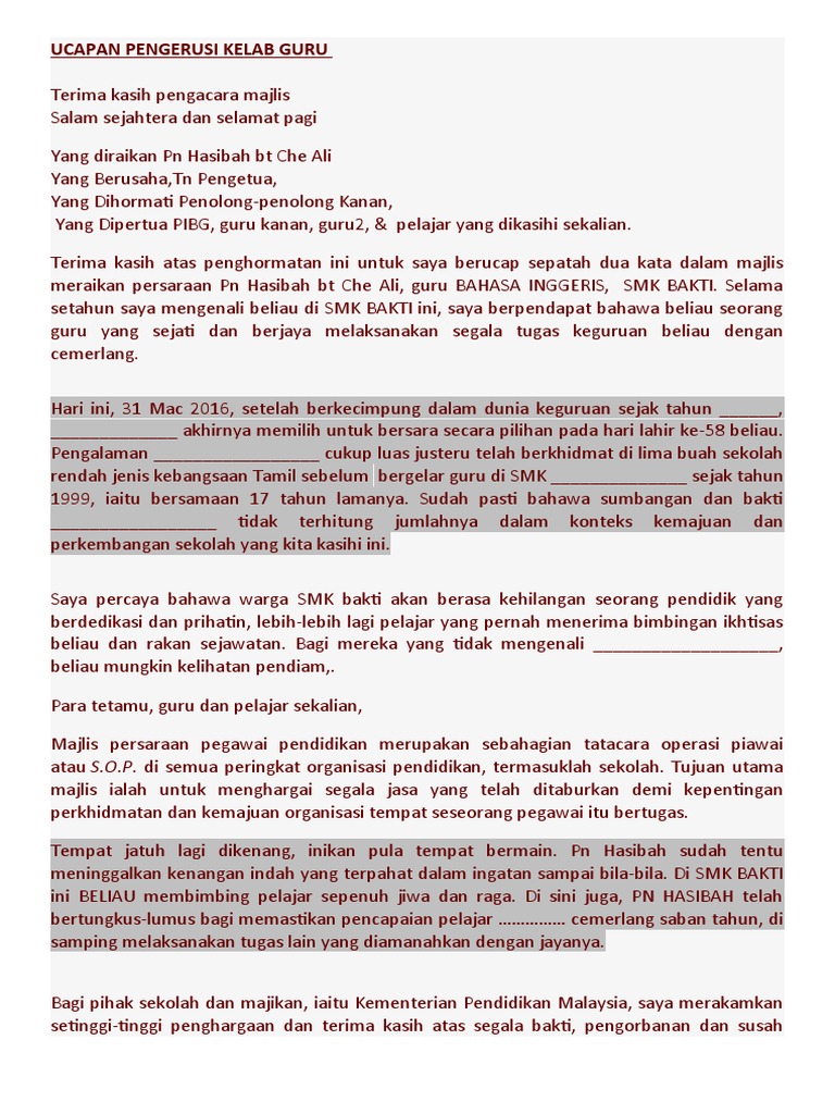 Yang Berusaha En Zainuddin bin Basiran Guru Besar Sekolah Kebangsaan Seri Medan 2. Teks Ucapan Pengetua Majlis Perpisahan Docx Document. Terutamanya bila kita kena berucap kepada orang yang kita sayang.